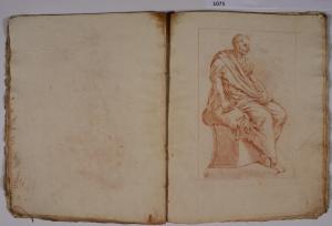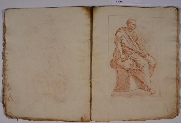 - NOTIZIE STORICO CRITICHE L'album, costituito da disegni di copia a matita rossa, riproduce alcune delle incisioni, con sculture dell'antichità, realizzate da François Perrier (1594-1650) e raccolte nella serie di cento tavole "Segmenta nobilium signorum et statuarum", data alle stampe per la prima volta a Roma nel 1638 e oggi nota in più edizioni, anche di anni successivi (sulla serie incisoria: S. Laveissière, "L'antique selon François Perrier: les Segmenta nobilium Signorum et leurs modèles", in "Poussin et la construction de l'antique", 2011, pp. 49-151). \nIl foglio in analisi riproduce l'incisione (tavola 15) con "Menandro" del Museo Nazionale Romano.