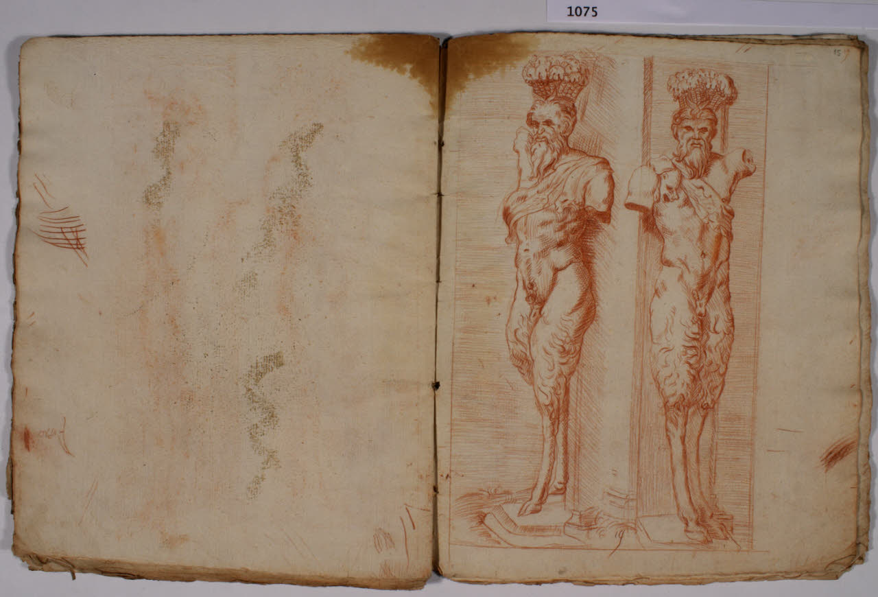 - NOTIZIE STORICO CRITICHE L'album, costituito da disegni di copia a matita rossa, riproduce alcune delle incisioni, con sculture dell'antichità, realizzate da François Perrier (1594-1650) e raccolte nella serie di cento tavole "Segmenta nobilium signorum et statuarum", data alle stampe per la prima volta a Roma nel 1638 e oggi nota in più edizioni, anche di anni successivi (sulla serie incisoria: S. Laveissière, "L'antique selon François Perrier: les Segmenta nobilium Signorum et leurs modèles", in "Poussin et la construction de l'antique", 2011, pp. 49-151). \nIl foglio in analisi riproduce l'incisione (tavola 19) con "Satiro Della Valle" dei Musei Capitolini di Roma.
