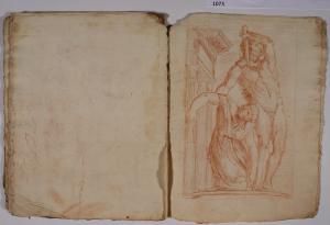 - NOTIZIE STORICO CRITICHE L'album, costituito da disegni di copia a matita rossa, riproduce alcune delle incisioni, con sculture dell'antichità, realizzate da François Perrier (1594-1650) e raccolte nella serie di cento tavole "Segmenta nobilium signorum et statuarum", data alle stampe per la prima volta a Roma nel 1638 e oggi nota in più edizioni, anche di anni successivi (sulla serie incisoria: S. Laveissière, "L'antique selon François Perrier: les Segmenta nobilium Signorum et leurs modèles", in "Poussin et la construction de l'antique", 2011, pp. 49-151). \nIl foglio in analisi riproduce l'incisione (tavola 32) con "Galata suicida" del Museo Nazionale Romano.