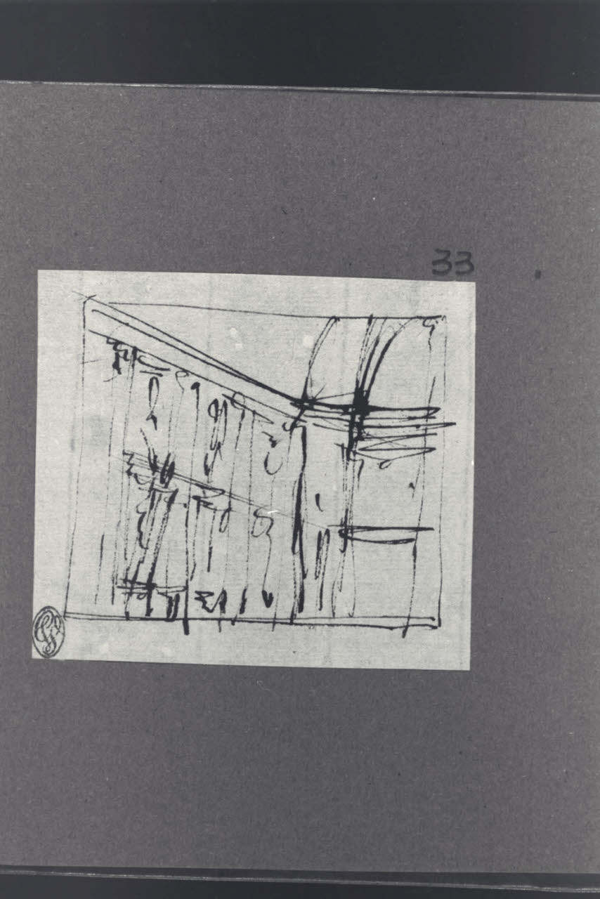 - NOTIZIE STORICO CRITICHE Il disegno fa parte di un piccolo album Vallardi del 1840, di dimensioni mm 160 x 175, sulla cui copertina in pelle marrone chiaro è incisa l'iscrizione in lettere capitali dorate "Paolo Landriani / milanese / e suoi contemporanei / nell'arte prospettica valentissimi / questi loro disegni / Giuseppe Vallardi / raccolse per tramandare / co' passati maestri a' futuri / la stabile rinomanza / della scuola lombarda / l'anno MDCCCXL". Ogni singolo disegno è incollato a un foglio dell'album di carta di colore grigio-azzurro.