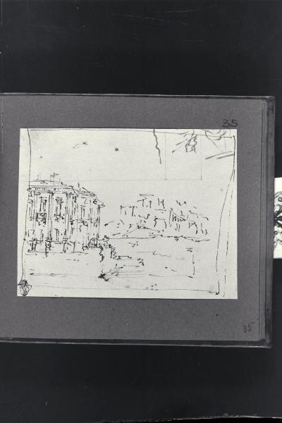 - NOTIZIE STORICO CRITICHE Il disegno fa parte di un piccolo album Vallardi del 1840, di dimensioni mm 160 x 175, sulla cui copertina in pelle marrone chiaro è incisa l'iscrizione in lettere capitali dorate "Paolo Landriani / milanese / e suoi contemporanei / nell'arte prospettica valentissimi / questi loro disegni / Giuseppe Vallardi / raccolse per tramandare / co' passati maestri a' futuri / la stabile rinomanza / della scuola lombarda / l'anno MDCCCXL". Ogni singolo disegno è incollato a un foglio dell'album di carta di colore grigio-azzurro.