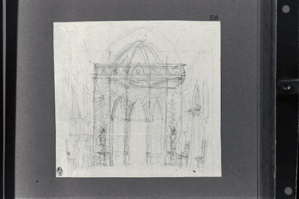 - NOTIZIE STORICO CRITICHE Il disegno fa parte di un album Vallardi del 1840, di dimensioni mm 254 x 295, sulla cui copertina in pelle marrone chiaro è incisa l'iscrizione in lettere capitali dorate "Paolo Landriani / milanese / e suoi contemporanei / nell'arte prospettica valentissimi / questi loro disegni / Giuseppe Vallardi / raccolse per tramandare / co' passati maestri a' futuri / la stabile rinomanza / della scuola lombarda / l'anno MDCCCXL". Ogni singolo disegno è incollato a un foglio dell'album di carta di colore grigio-azzurro.