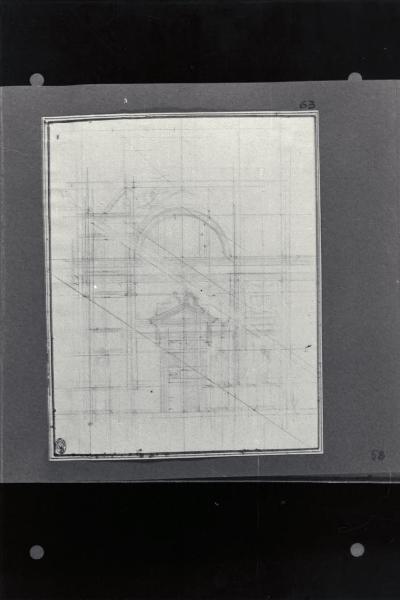 - NOTIZIE STORICO CRITICHE Il disegno fa parte di un album Vallardi del 1840, di dimensioni mm 254 x 295, sulla cui copertina in pelle marrone chiaro è incisa l'iscrizione in lettere capitali dorate "Paolo Landriani / milanese / e suoi contemporanei / nell'arte prospettica valentissimi / questi loro disegni / Giuseppe Vallardi / raccolse per tramandare / co' passati maestri a' futuri / la stabile rinomanza / della scuola lombarda / l'anno MDCCCXL". Ogni singolo disegno è incollato a un foglio dell'album di carta di colore grigio-azzurro.