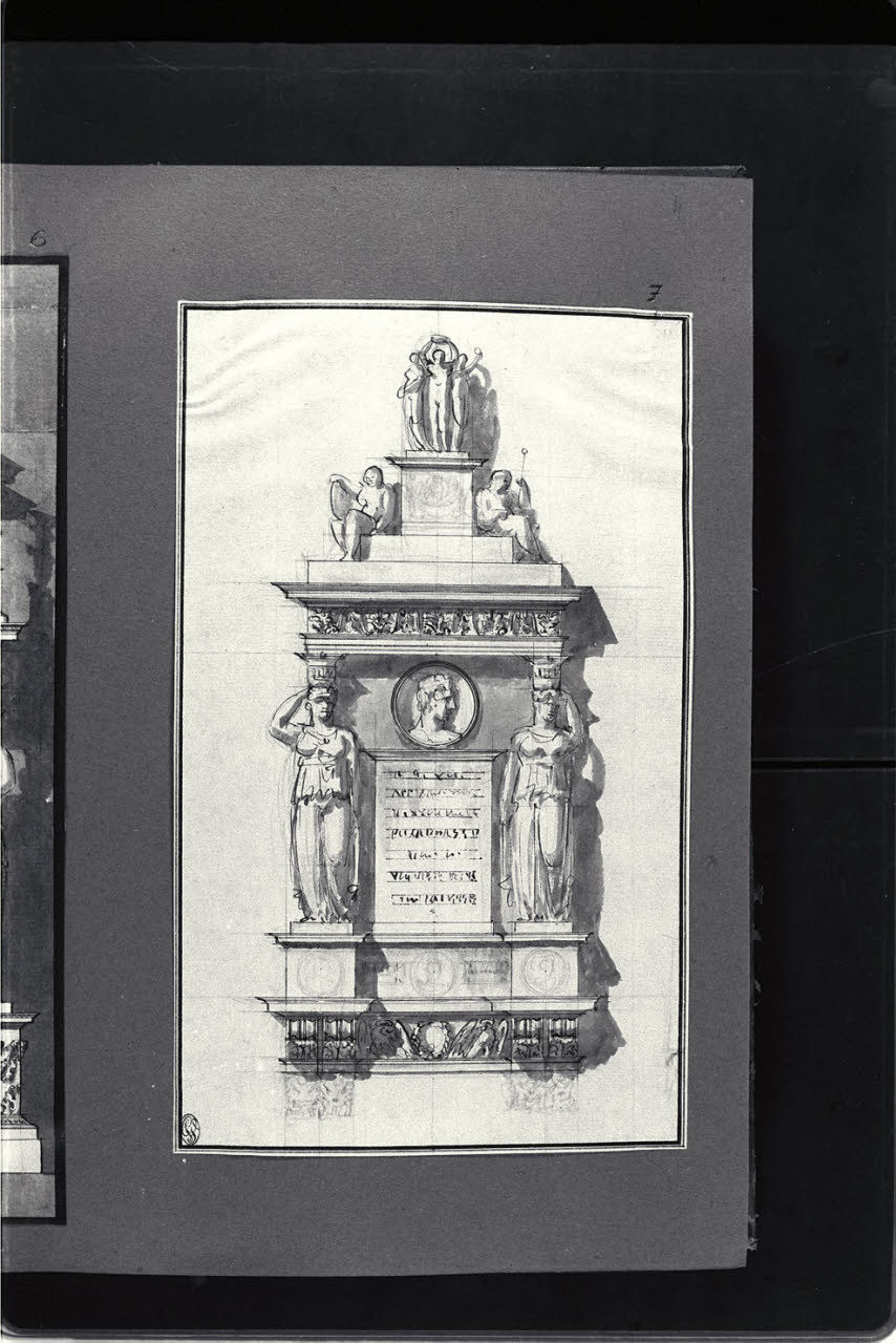 - NOTIZIE STORICO CRITICHE Il disegno fa parte di un album Vallardi del 1840, di dimensioni mm 352 x 460, sulla cui copertina in pelle marrone chiaro è incisa l'iscrizione in lettere capitali dorate "Paolo Landriani / milanese / e suoi contemporanei / nell'arte prospettica valentissimi / questi loro disegni / Giuseppe Vallardi / raccolse / per tramandare / co' passati maestri a' futuri / la stabile rinomanza / della scuola lombarda / l'anno MDCCCXL". Ogni singolo disegno è incollato a un foglio dell'album di carta di colore grigio-azzurro.\nL'opera presenta similitudini iconografiche con altre, di analogo soggetto, di mano di Paolo Landriani e conservate negli album Vallardi.