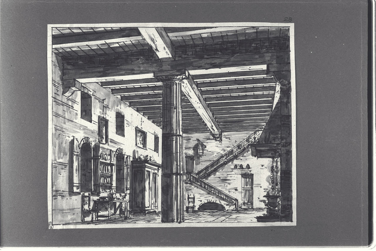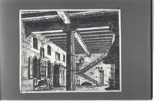 - NOTIZIE STORICO CRITICHE Il disegno fa parte di un album Vallardi del 1840, di dimensioni mm 352 x 460, sulla cui copertina in pelle marrone chiaro è incisa l'iscrizione in lettere capitali dorate "Paolo Landriani / milanese / e suoi contemporanei / nell'arte prospettica valentissimi / questi loro disegni / Giuseppe Vallardi / raccolse / per tramandare / co' passati maestri a' futuri / la stabile rinomanza / della scuola lombarda / l'anno MDCCCXL". Ogni singolo disegno è incollato a un foglio dell'album di carta di colore grigio-azzurro.