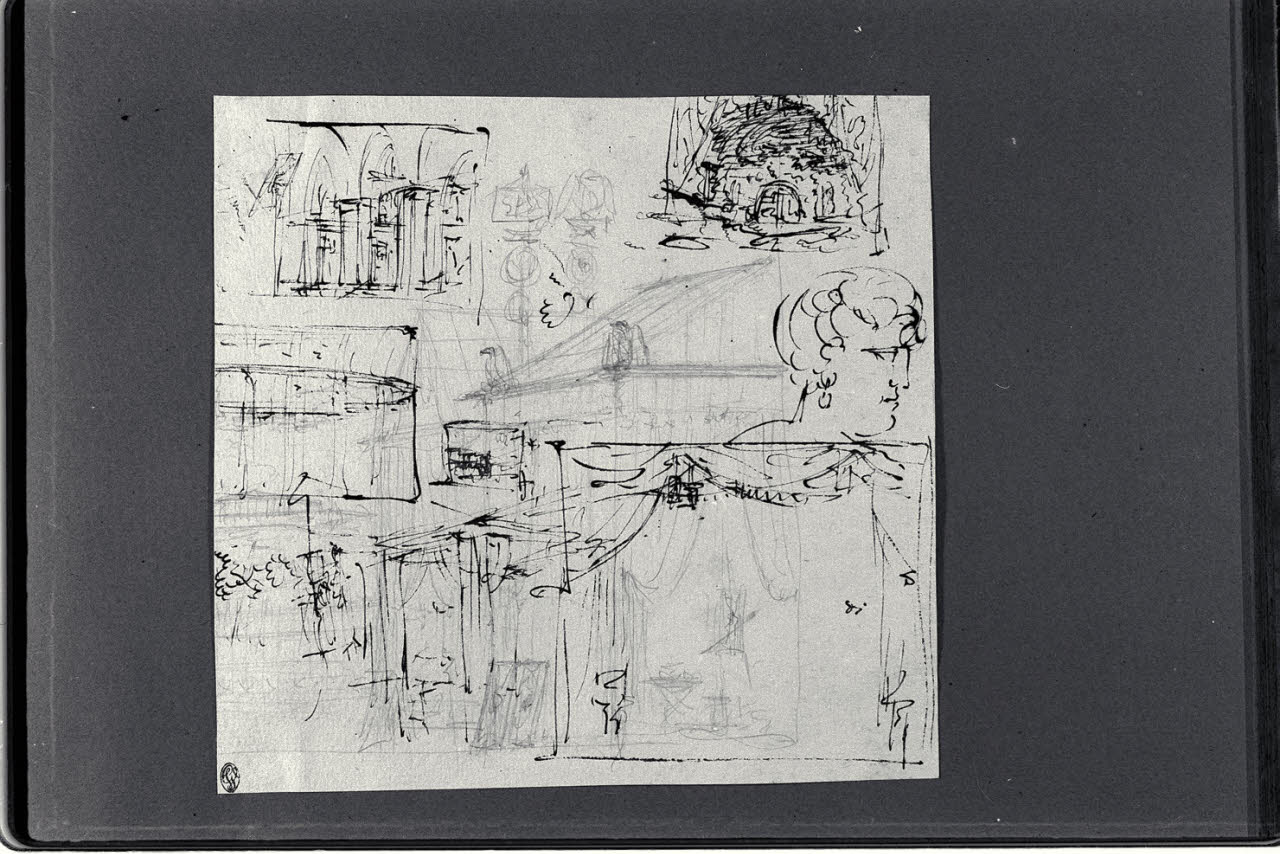 - NOTIZIE STORICO CRITICHE Il disegno fa parte di un album Vallardi del 1840, di dimensioni mm 352 x 460, sulla cui copertina in pelle marrone chiaro è incisa l'iscrizione in lettere capitali dorate "Paolo Landriani / milanese / e suoi contemporanei / nell'arte prospettica valentissimi / questi loro disegni / Giuseppe Vallardi / raccolse / per tramandare / co' passati maestri a' futuri / la stabile rinomanza / della scuola lombarda / l'anno MDCCCXL". Ogni singolo disegno è incollato a un foglio dell'album di carta di colore grigio-azzurro.