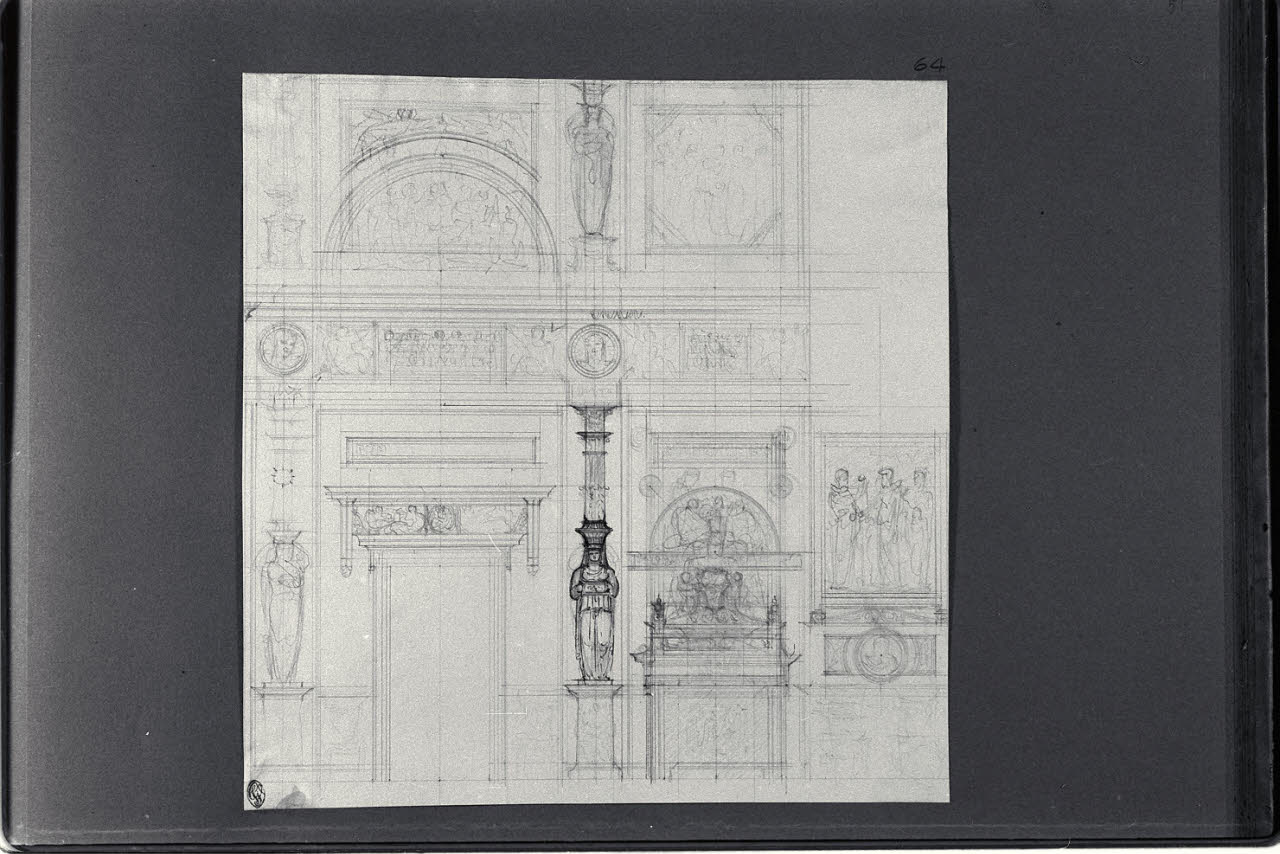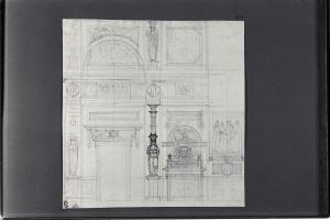 - NOTIZIE STORICO CRITICHE Il disegno fa parte di un album Vallardi del 1840, di dimensioni mm 352 x 460, sulla cui copertina in pelle marrone chiaro è incisa l'iscrizione in lettere capitali dorate "Paolo Landriani / milanese / e suoi contemporanei / nell'arte prospettica valentissimi / questi loro disegni / Giuseppe Vallardi / raccolse / per tramandare / co' passati maestri a' futuri / la stabile rinomanza / della scuola lombarda / l'anno MDCCCXL". Ogni singolo disegno è incollato a un foglio dell'album di carta di colore grigio-azzurro.