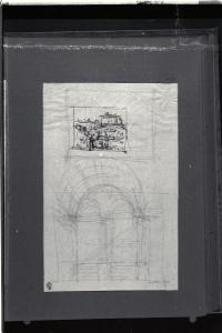 - NOTIZIE STORICO CRITICHE Il disegno fa parte di un album Vallardi del 1840, di dimensioni mm 352 x 460, sulla cui copertina in pelle marrone chiaro è incisa l'iscrizione in lettere capitali dorate "Paolo Landriani / milanese / e suoi contemporanei / nell'arte prospettica valentissimi / questi loro disegni / Giuseppe Vallardi / raccolse / per tramandare / co' passati maestri a' futuri / la stabile rinomanza / della scuola lombarda / l'anno MDCCCXL". Ogni singolo disegno è incollato a un foglio dell'album di carta di colore grigio-azzurro.