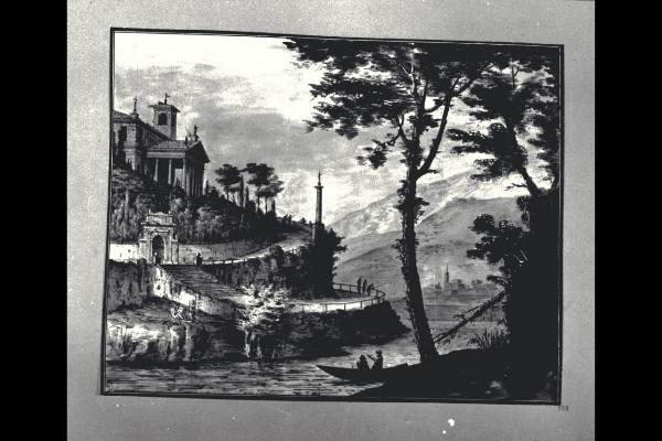 - NOTIZIE STORICO CRITICHE Il disegno fa parte di un album Vallardi del 1840, di dimensioni mm 561 x 735, sulla cui copertina in pelle marrone è incisa l'iscrizione in lettere capitali dorate "Paolo Landriani / milanese / e suoi contemporanei / nell'arte prospettica valentissimi. / Questi loro disegni / Giuseppe Vallardi / raccolse / per tramandare / co' passati maestri a' futuri / la stabile rinomanza / della scuola lombarda / l'anno MDCCCXL.". Ogni singolo disegno è incollato a un foglio dell'album, di carta grigia, presentante una cornice realizzata a penna e pennello e inchiostro sui toni del grigio.