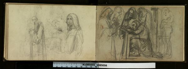 Figura maschile in piedi, nell'atto di voltarsi; busto femminile con testa rivolta a sinistra