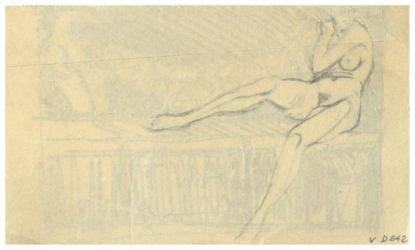 Figura femminile seduta (impronta figura del recto). Ricalco di nudo femminile seduto