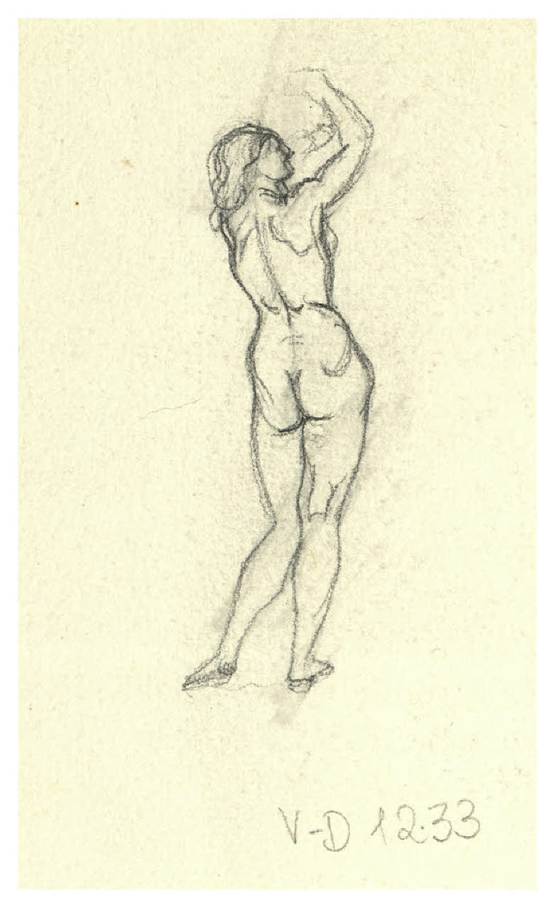 Nudo femminile di spalle. Disegno preparatorio per l'ex libris per Mansueto Fenini, Vulnerata floreo