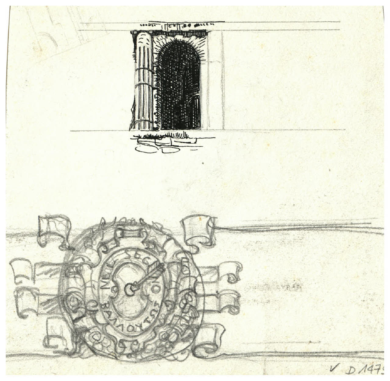 Studio di finestra; Freccia nel segno - Nel segno. Studio per emblema