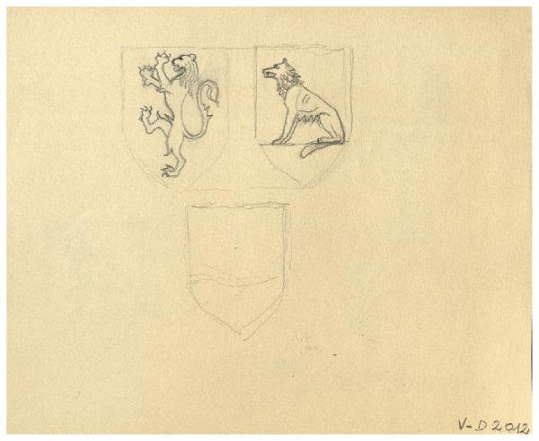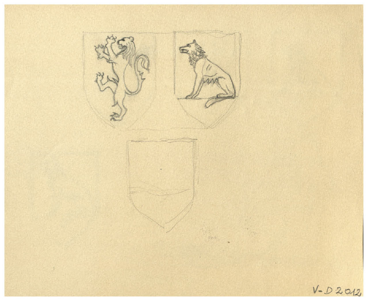 Stemmi. Disegno preparatorio per la copertina di Giovanni Pascoli, Prose, Milano, Mondadori, 1952