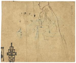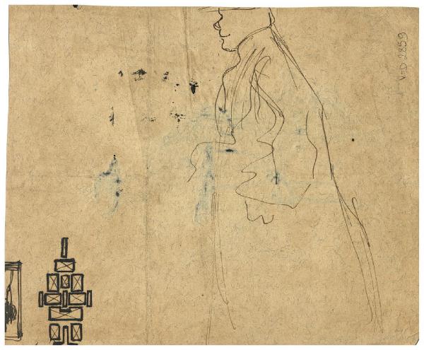 Schizzo di uomo di profilo, motivo decorativo