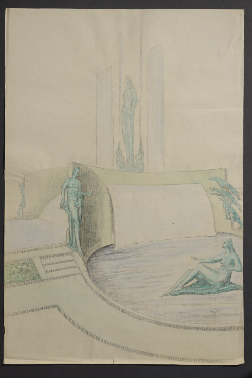 Vista parziale della fontana di Venere, Susanna e Diana per Salsomaggiore Terme. Studio preparatorio