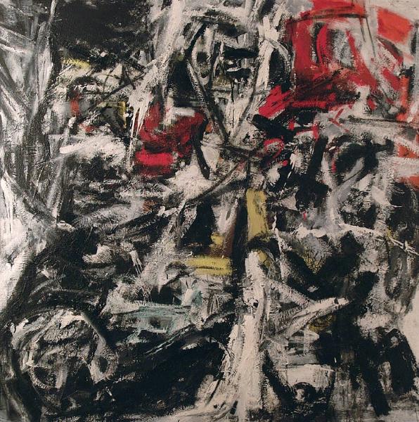 L'opera si caratterizza per una tecnica più propriamente gestuale e per l'uso espressivo e dirompente del colore. La pratica gestuale si concreta in una fitta trama di tratti colorati che percorre la tela nella sua interezza con frequenza e intensità variabili, generando una dinamicità interna. Segni e linee si dipanano su differenti piani, creando vortici di energia e diversi flussi di movimenti, centripeti e centrifughi. Il tessuto cromatico è caratterizzato dai contrasti, dalla tensione tra le ampie campiture del nero, del grigio e del bianco, dalle accensioni del rosso e le luminosità del giallo brillante al centro della composizione, con sporadici e dissonanti contrappunti di colore verde.
