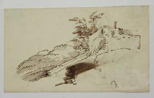 Paesaggio con casa e macchietta. Paesaggio con casa e macchietta