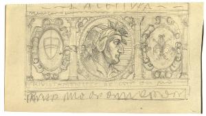 Ritratto di Dante Alighieri. Disegno preparatorio per la testata de La Lettura. Rivista mensile del Corriere della Sera, a. XVI, n. 7, 1 luglio 1916