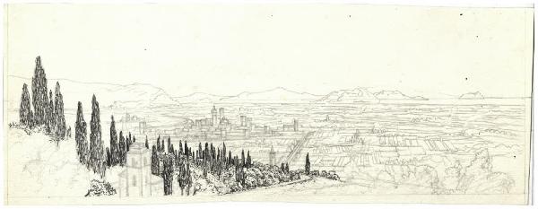 Paesaggio con una città (Firenze?) (disegno preparatorio per l'acquaforte Veduta con tralci di vite)