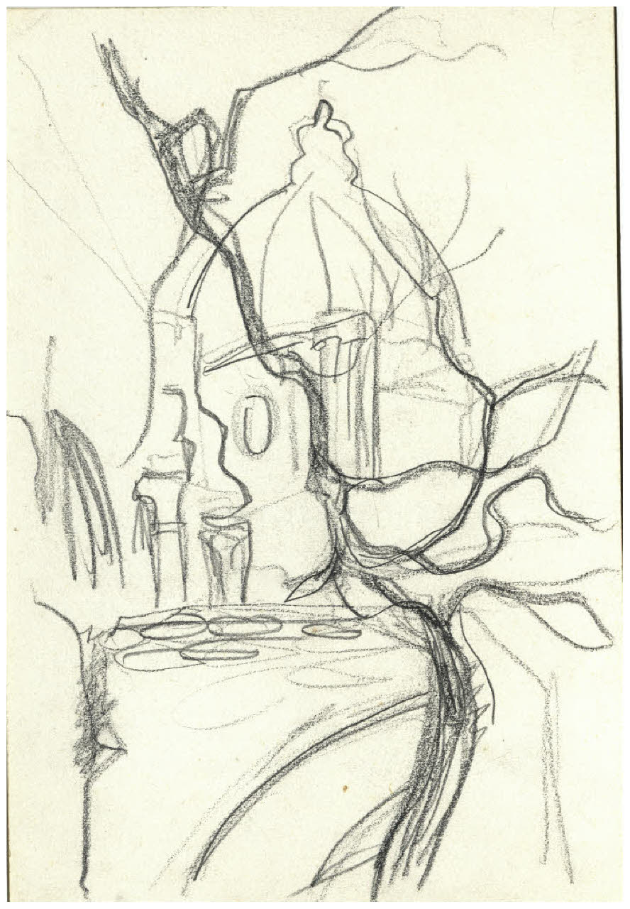 - NOTIZIE STORICO CRITICHE Disegno preparatorio per l'acquaforte L'arco di Settimio Severo e la cupola di S. Luca (Bellini-Alberti 25): maggiori dettagli circa la datazione della stampa provengono ora da una nota manoscritta dell'artista ("XVIII. Arco di Settimio [19]17") presente su un Album del Fondo Disertori al Gabinetto dei Disegni, che contiene una lista dei suoi lavori fino al 1917 circa (FD Album 10, 6). \n
