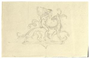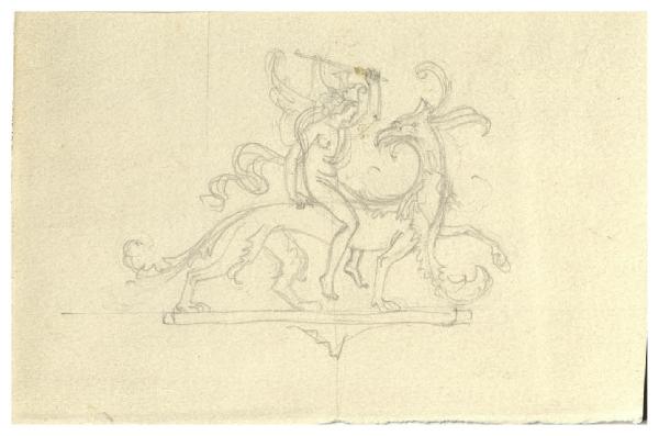 Uomo a cavallo di un grifone. Disegno preparatorio per la copertina di George Bernard Shaw, I fidanzati impossibili, Milano, Mondadori, 1928