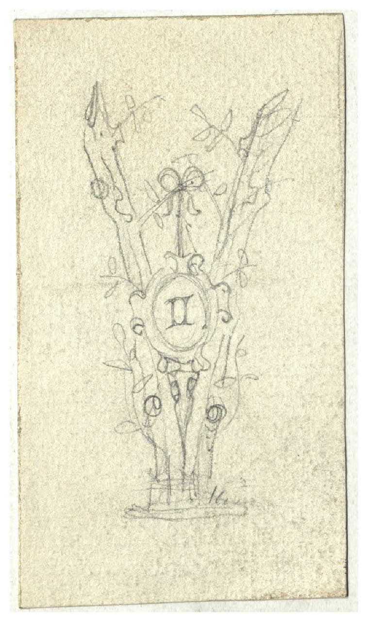 Doppio tronco con scudo e iscrizione: II (studio per illustrazione)