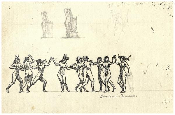 Le nove muse (disegno preparatorio per l'acquaforte, mai realizzata, Il Pianeta Marte); Studio per l'ex libris per Leonora Detering