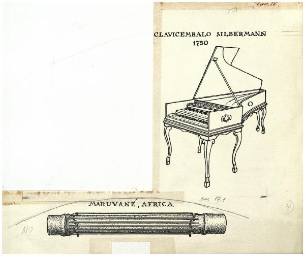 Strumenti musicali - Clavicembalo Silbermann 1750; Maruvane, Africa. Studio per illustrazione