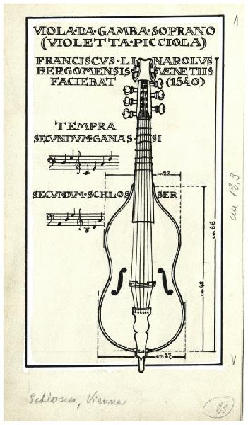 Strumenti musicali - Viola da gamba soprano (violetta picciola). Studio per illustrazione
