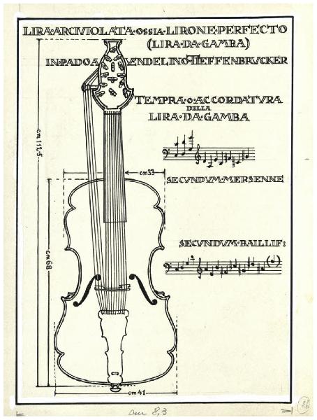Strumenti musicali - Lira arciviolata ossia lirone perfecto (lira da gamba), in Padoa Vendelino Tieffenbrucker. Studio per illustrazione