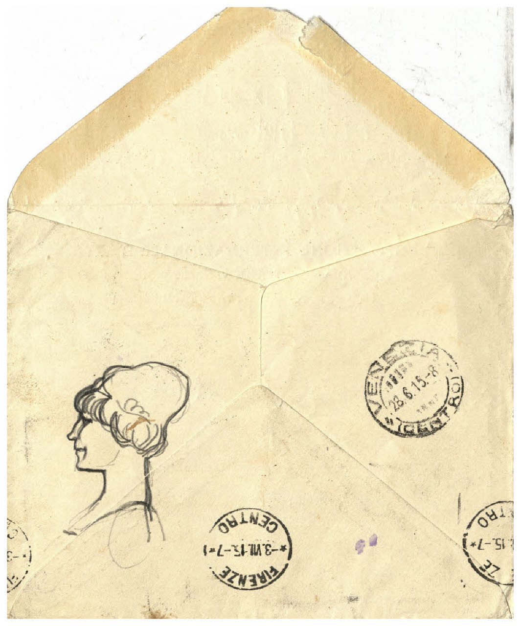 Profilo di volto femminile su busta da lettera