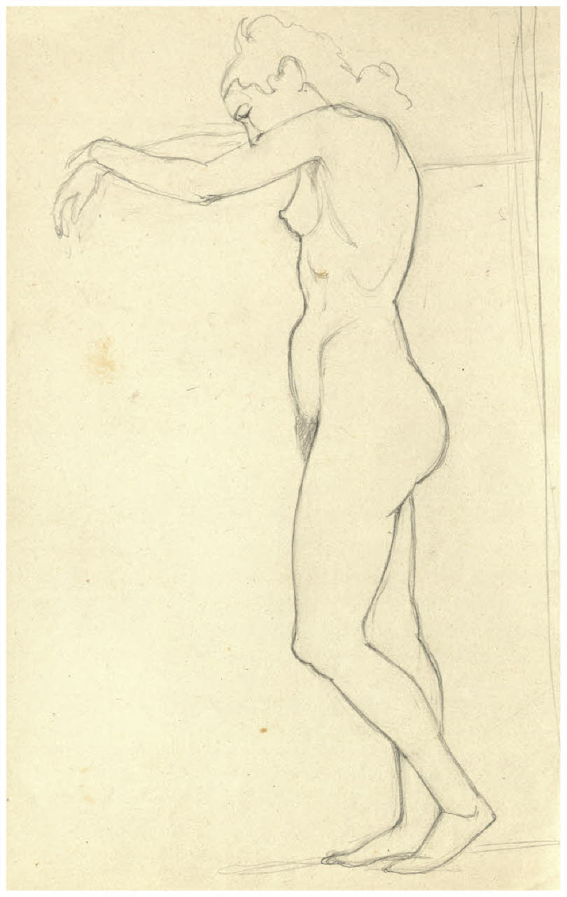 Nudo femminile di profilo con la testa piegata in avanti (disegno preparatorio per l'ex libris per Benvenuto Disertori, Tu non se' morta...)