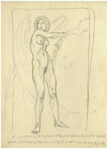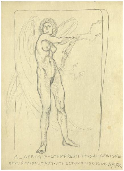 Figura femminile alata con folgore (Allegoria del potere dell'Amore) - Aligerum fulmen fregit deus aliger igne dum demonstrat uti est fortior ignis Amor