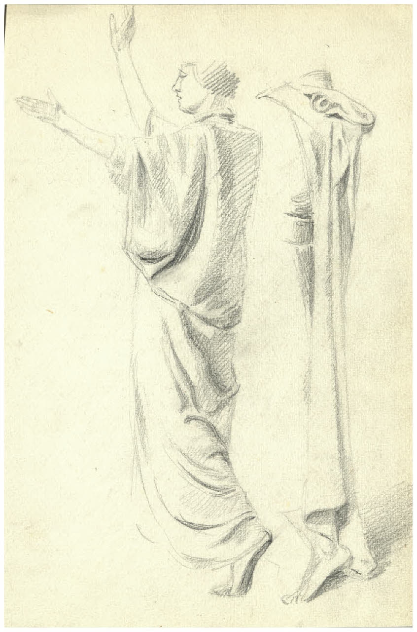 Doppio studio di figura maschile togata. Disegno preparatorio per la litografia Oromazes e Minerva