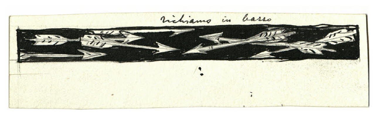 Fregio con frecce. Studio per illustrazione di Luigi Siciliani, Preghiera del mattino, in La Lettura. Rivista mensile del Corriere della Sera, giugno 1917, p. 450