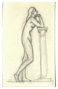 Nudo femminile con il gomito appoggiato ad una bassa colonna