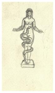 Statua raffigurante una donna tra le spire di un serpente. Studio per illustrazione