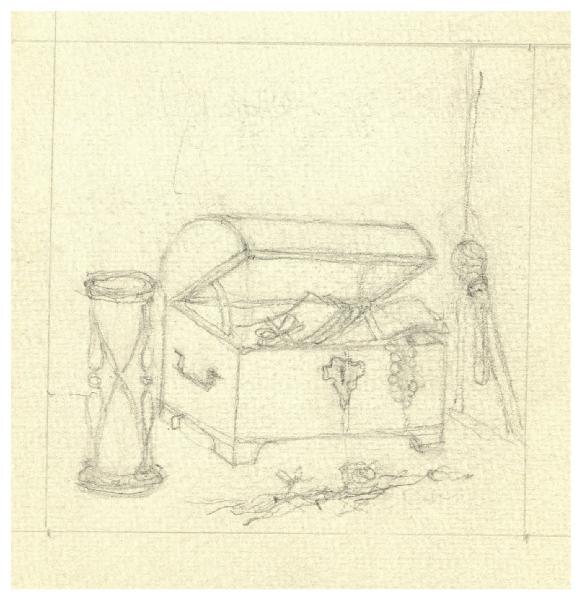 Scrigno e clessidra. Studio per illustrazione