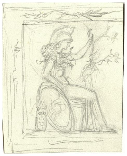 Minerva seduta. Disegno preparatorio per la copertina di Giovanni Pascoli, Poesie, Milano, Mondadori, 1939