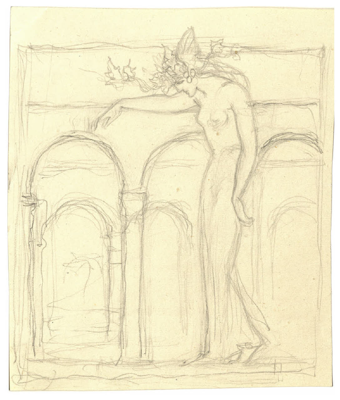 Figura femminile e archi (disegno preparatorio per Giovanni Papini, Autoritratti e ritratti, Milano, Mondadori, 1962)