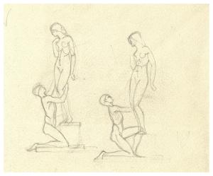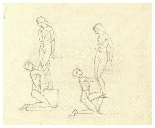 Due figure, una in ginocchio. Doppio disegno preparatorio per la copertina di George Bernard Shaw, Pigmalione, Milano, Mondadori, 1928