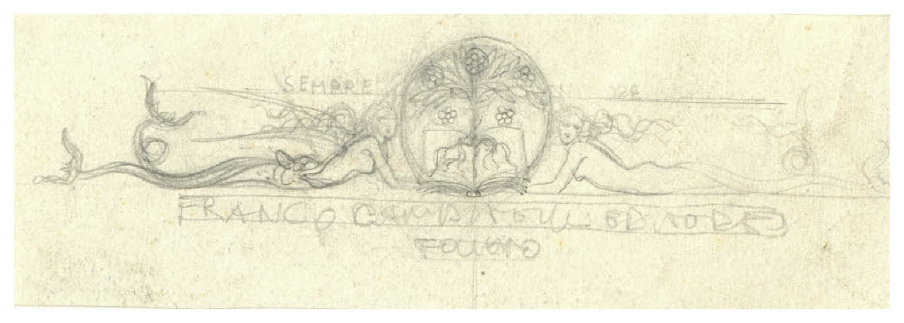 Albero in fiore e due sirene - Sempre in fiore. Schizzo per la marca dell'editore Franco Campitelli di Foligno