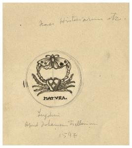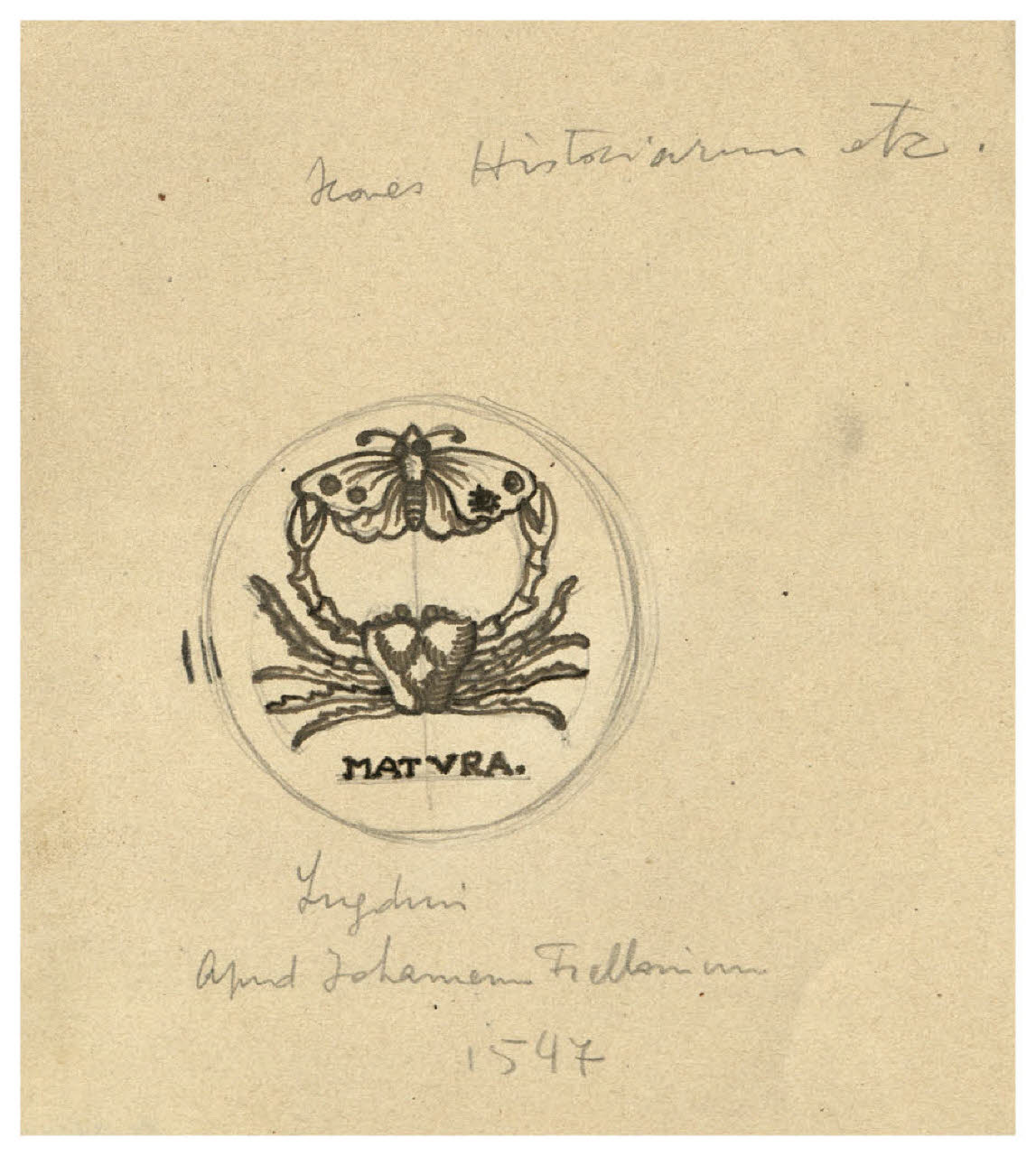 Granchio e farfalla - Matura (disegno preparatorio per emblema)
