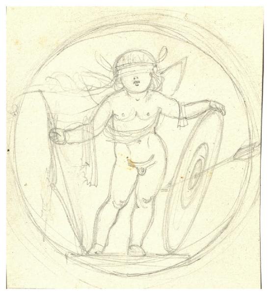 Cupido bendato con arco e bersaglio (disegno preparatorio per un finalino di Enrico Corradini, L'aurea leggenda di Madonna Chigi, Milano, Mondadori, 1930, p. 276)
