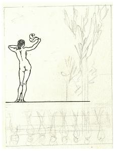 - NOTIZIE STORICO CRITICHE Il soggetto di questo disegna presenta una somiglianza con quello dell'acquaforte La ninfetta, 1913 (Bellini-Alberti 17). Potrebbe trattarsi di una prima idea per quel progetto.\n
