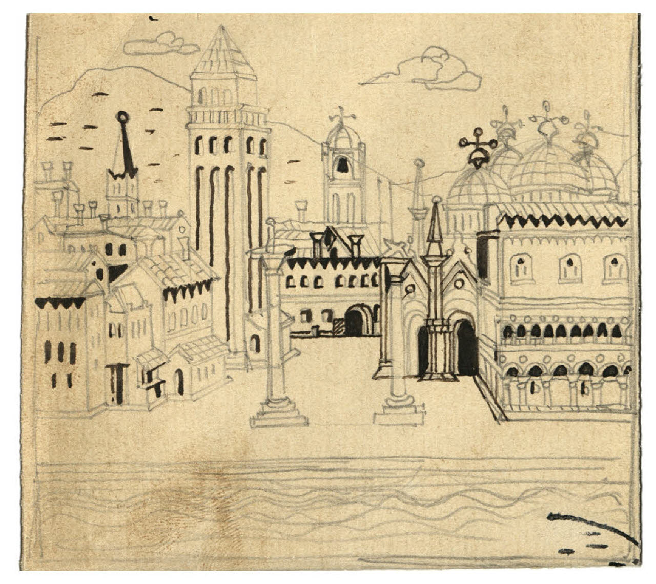 Veduta di piazza S. Marco a Venezia. Disegno preparatorio per la copertina di Emporium, maggio 1920
