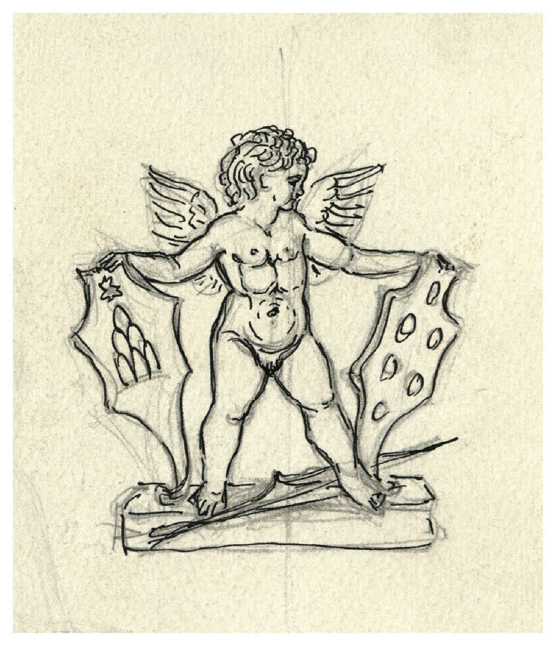 Putto con due stemmi (disegno preparatorio per la copertina di Enrico Corradini, L'aurea leggenda di Madonna Chigi, Milano, Mondadori, 1930)