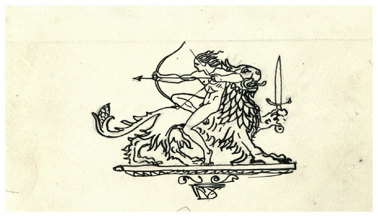 Arciere a cavallo di un leone (disegno preparatorio per la copertina di Giovanni Papini, Prose morali, Milano, Mondadori, 1959)