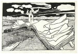 Grande libro aperto in un paesaggio
